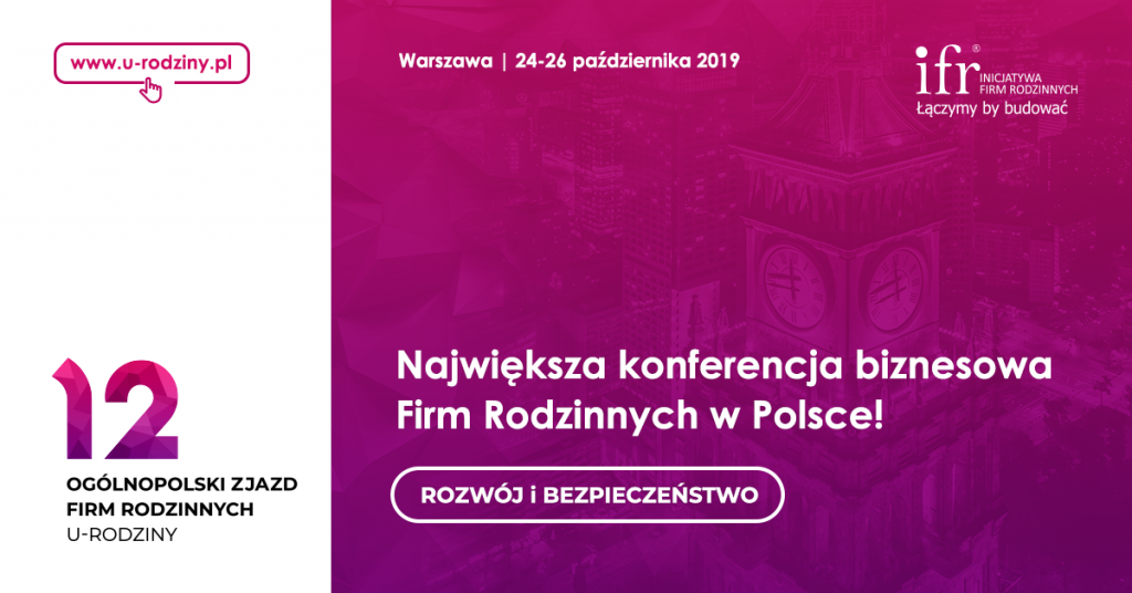 W dniach 24-26 października 2019 roku w Warszawie odbędzie się największa konferencja biznesowa dla środowiska polskich przedsiębiorców rodzinnych – 12. Ogólnopolski Zjazd Firm Rodzinnych U-RODZINY 2019.