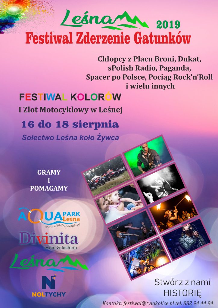 Rok 2019 przyniósł zmianę miejsca i formuły imprezy. Gościny udzieliła nam Leśna koło Żywca. Po rozmowie z właścicielem tamtejszego Aquaparku – Marcinem Cenderem i Sołtysem – Bogumiłem Biernatem, podjęliśmy decyzję o przeniesieniu Festiwalu do przyjaznego Sołectwa Leśna. Obaj panowie czynnie zaangażowali się w organizację wydarzenia.