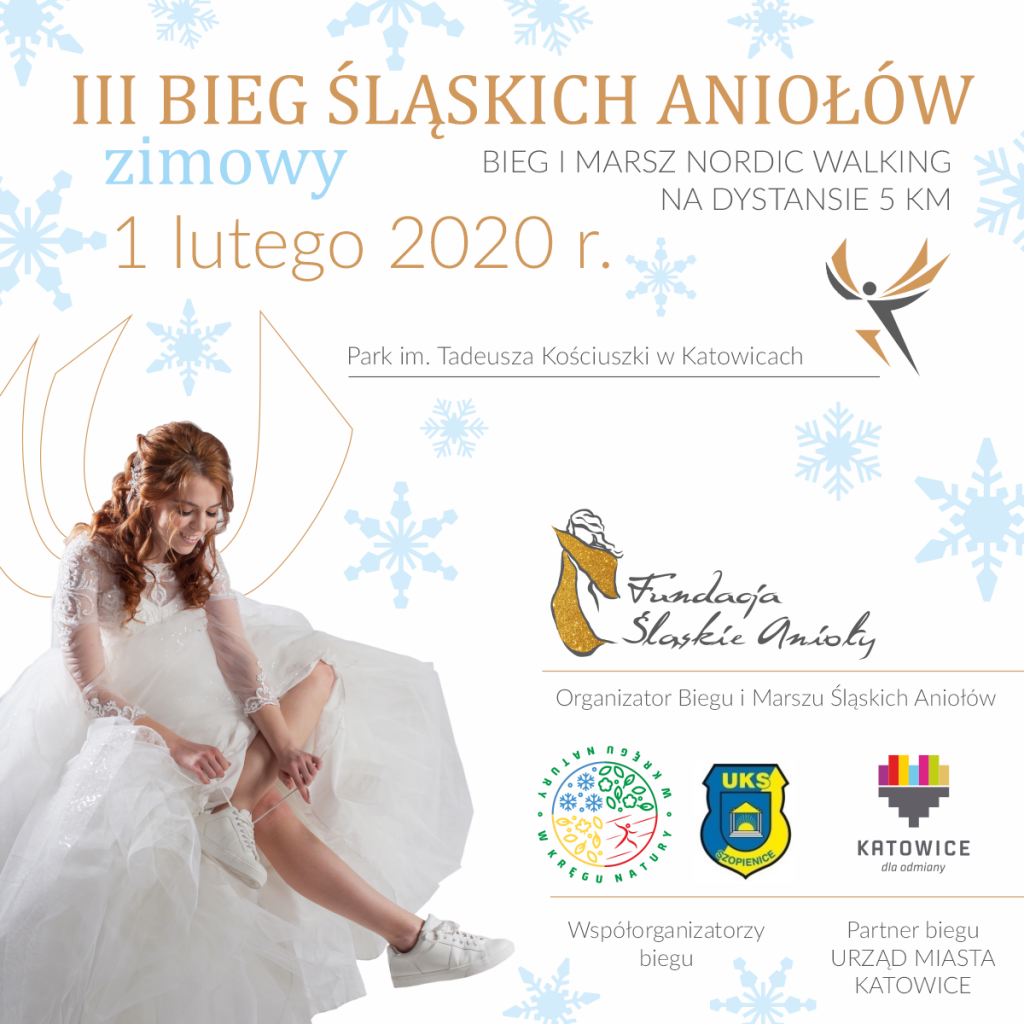 Zapraszamy do udziału w III Biegu charytatywnym Śląskich Aniołów. Oficjalne otwarcie biegu nastąpi w sobotę 1 lutego w Parku Kościuszki. Start oraz meta zawodów zlokalizowana będzie przy wieży spadochronowej. Organizatorzy przewidują udział około 500 biegaczy i chodziarzy, którzy będą ubrani na biało. Część środków uzyskanych z biegu zostanie przekazana na wycieczkę, wielkanocne śniadanie oraz prezenty dla podopiecznych Fundacji Śląskie Anioły, czyli dzieci z domów dziecka.