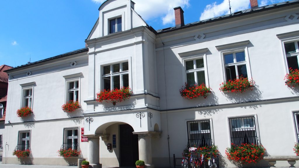 Budynek, w którym obecnie mieści się Urząd Gminy to zabytkowy pałac wzniesionym w 1748 roku. Do 1977 roku znajdowała się tu przychodnia wraz z porodówką. W 2007 roku ośrodek został przeniesiony do byłego budynku urzędu gminy a działalność urzędu przeniesiona do pałacu, w którym wcześniej był ośrodek zdrowia. Budynek pałacu wraz z przylegającym parkiem przejęliśmy od Skarbu Państwa w 1999 roku, stan obiektu był fatalny, więc przeprowadziliśmy tu wieloetapowy gruntowny remont, który rozpoczęto w latach 2000-2001 od naprawy dachu, później nastąpiła m.in. wymiana stropów, przebudowa klatki schodowej, renowacja elewacji, rewitalizacja parku oraz adaptacja pomieszczeń na potrzeby Urzędu Gminy.