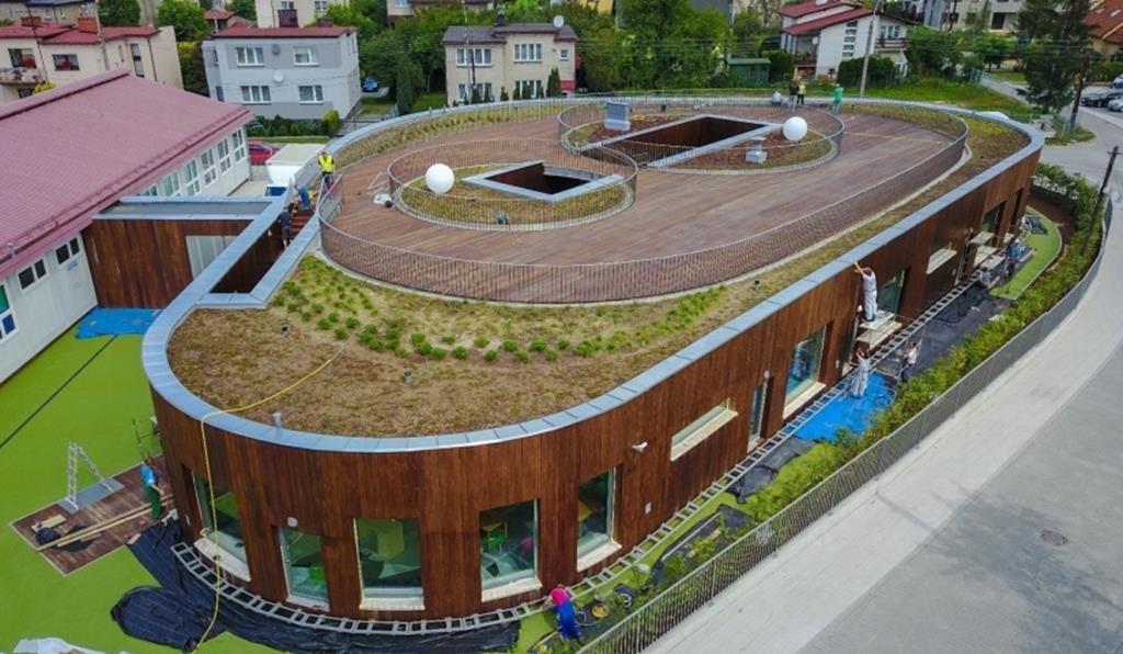 Przyciągająca wzrok drewniana elewacja, zielony dach pełniący funkcję tarasu, kolorowe korytarze oraz przestronne, jasne sale z bezpiecznym wyposażeniem – tak w skrócie można opisać nową siedzibę Przedszkola nr 4 w żorskiej dzielnicy Kleszczówka. Nowoczesny budynek 5-oddziałowego przedszkola, który powstał przy Szkole Podstawowej nr 1 w Żorach znalazł się w gronie 30 projektów nominowanych do nagrody w tegorocznej, siódmej już edycji prestiżowego konkursu Top Inwestycje Komunalne. W drugim etapie zmagań znalazły się inwestycje komunalne, proekologiczne projekty antysmogowe, a także projekty z zakresu smart cities. Spośród nich Rada Konsultacyjna wybierze ostatecznie dziesięć inwestycji, które zostaną wyróżnione tytułem „TOP Inwestycja Komunalna 2018”.