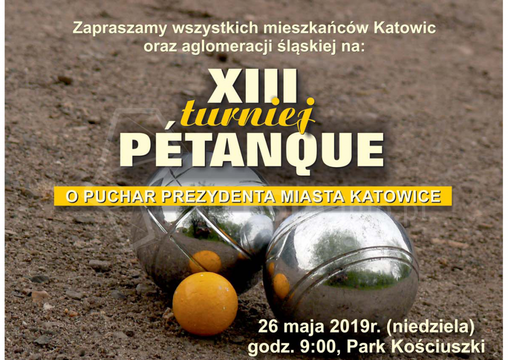 Jak co roku, Dom Miasta Saint-Etienne w Katowicach zaprasza na XIII turniej gry w Pétanque o Puchar Prezydenta Miasta Katowice, który odbędzie się w niedzielę 26 maja na terenie Parku Kościuszki – plac do gry w kule przy Wieży Spadochronowej